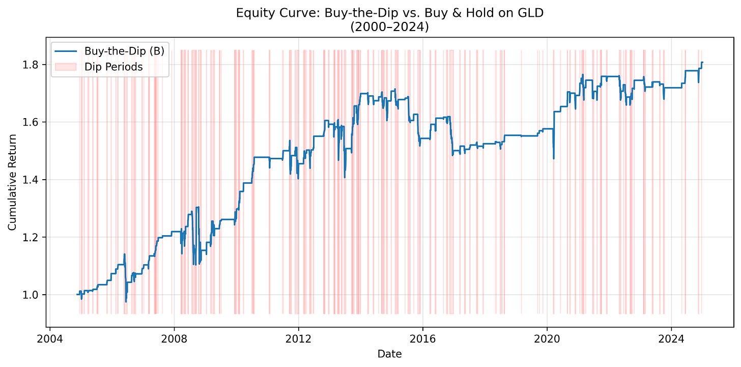 For example, GLD shows some alpha with this strategy: